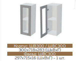 Глубина верхних шкафов: 300 мм